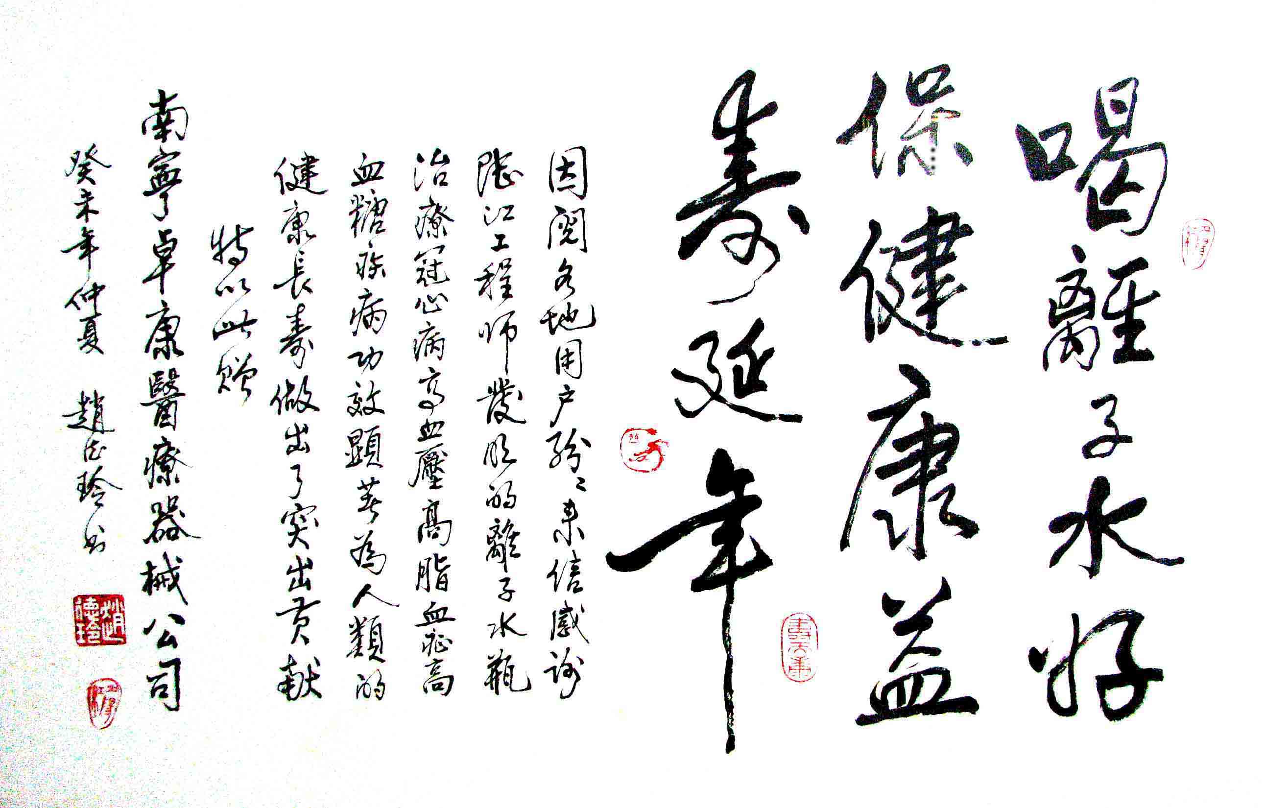 - -----南寧卓康微小水科技有限公司原為南寧卓康醫(yī)療器械有限責任公司 ,用戶普遍反饋高血壓患者飲用2—5個月,癥狀消除,不再服藥,治愈了高血壓; 冠心病患者,包括已做和未做支架或搭撟手術(shù)者,經(jīng)3—5個月飲用,消除心痛、胸悶、早搏、房顫和心絞痛等癥狀,逆轉(zhuǎn)至消除動脈粥樣硬化和斑塊,一年左右治愈冠心病,心腦電圖正常,經(jīng)冠脈造影掃描無明顯狹窄,表明冠心病痊愈;糖尿病人飲用3-10個月,血糖尿糖正常,治愈2型糖尿病; 并且使前列腺增生、低血壓、腦萎慢性咽喉炎、慢性氣管炎、支氣管炎、哮喘、矽肺病、甲亢、慢性胃腸炎、膽囊炎、慢性腎炎、腎衰、風濕性關(guān)節(jié)炎、痔瘡和濕疹皮炎及中風癱瘓或偏癱失語后遺癥等不藥而愈,且多病同治,無需終生服藥,彌補了幾千年來藥物的欠缺,使“微小水”成為人類消除高血壓、冠心病和糖尿病的寶貴資源。腦動脈粥樣硬化、低血壓和前列腺增生患者,一般飲用四個月痊愈;中風后遺癥患者,一般飲用8個月痊愈。請詳閱《用戶反饋》欄目中大量患者的反饋信、檢測報告,有的還附照片。產(chǎn)品屢獲大獎,論文也屢獲一等獎。廣大用戶好評不斷,有口皆碑。
